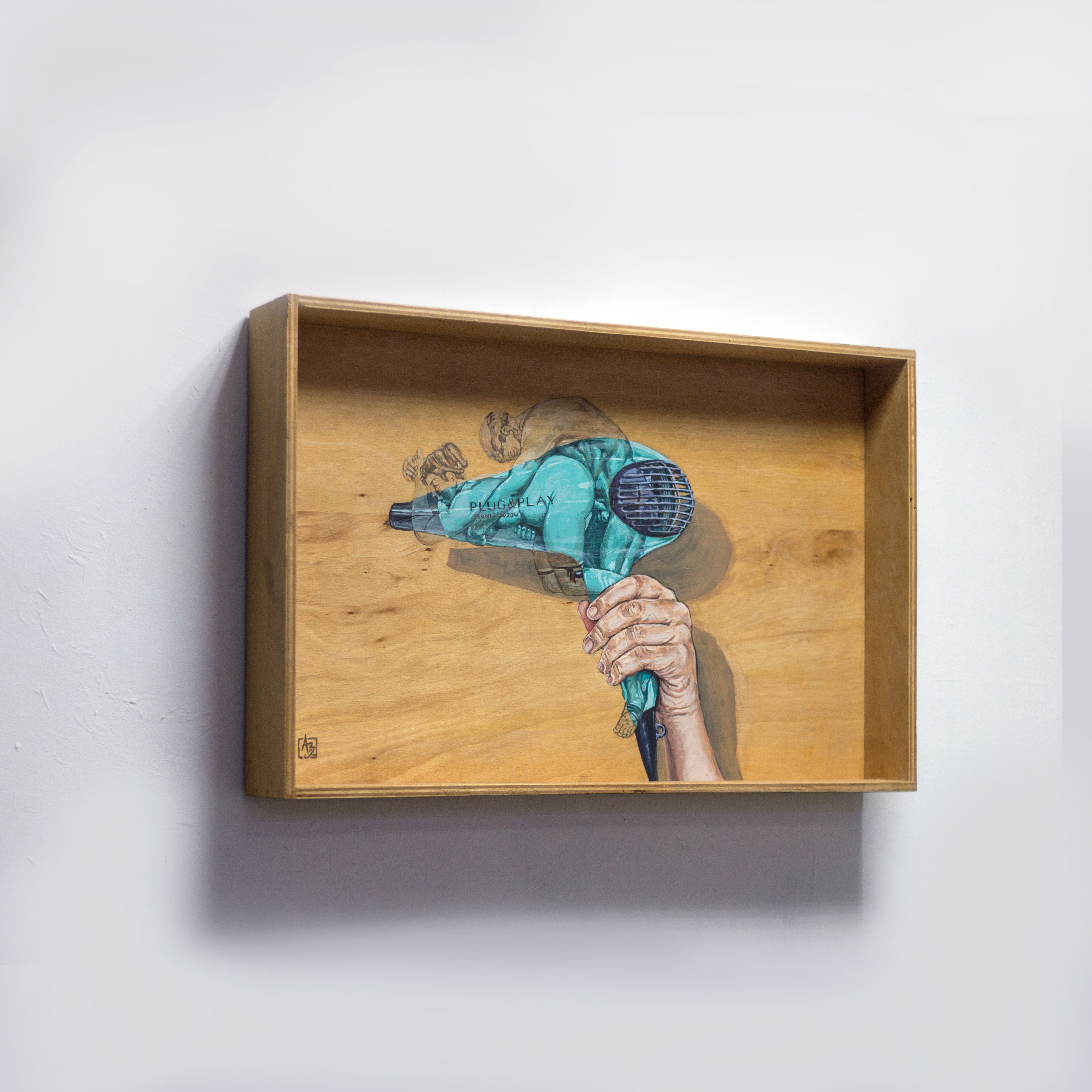 This was part of a series of paintings focused on the various objects that we use, their uses, how language can change the meaning of their function, and the idea that we hide things, both physical and metaphorical, in drawers.