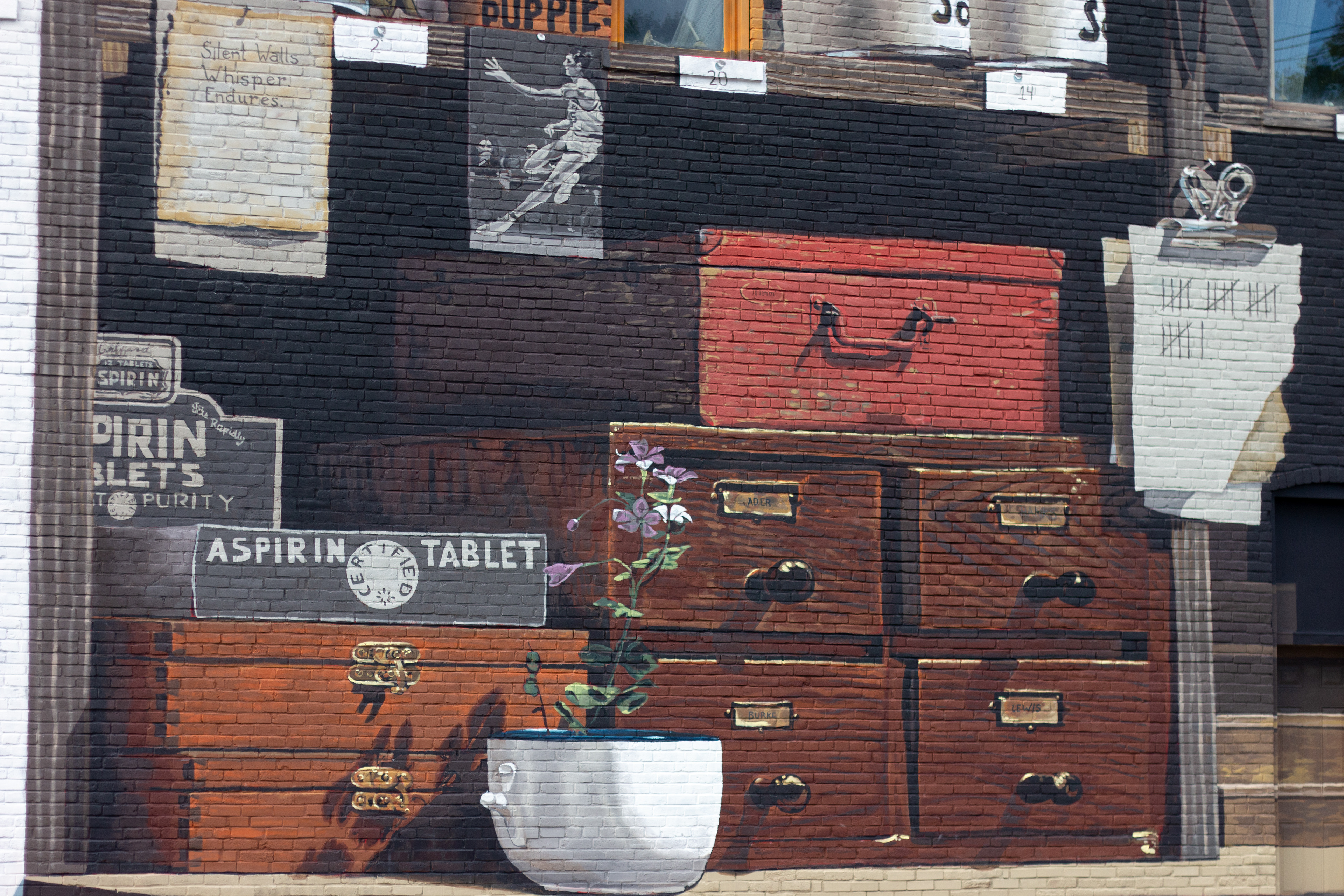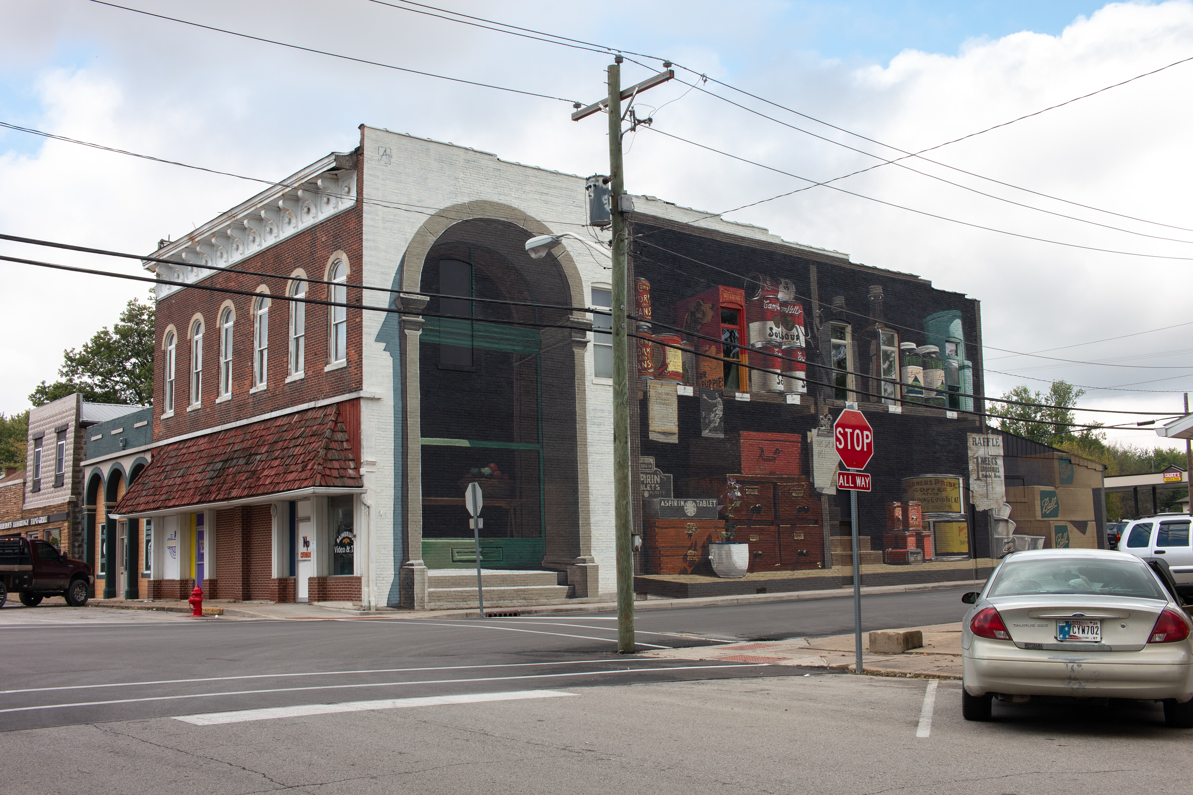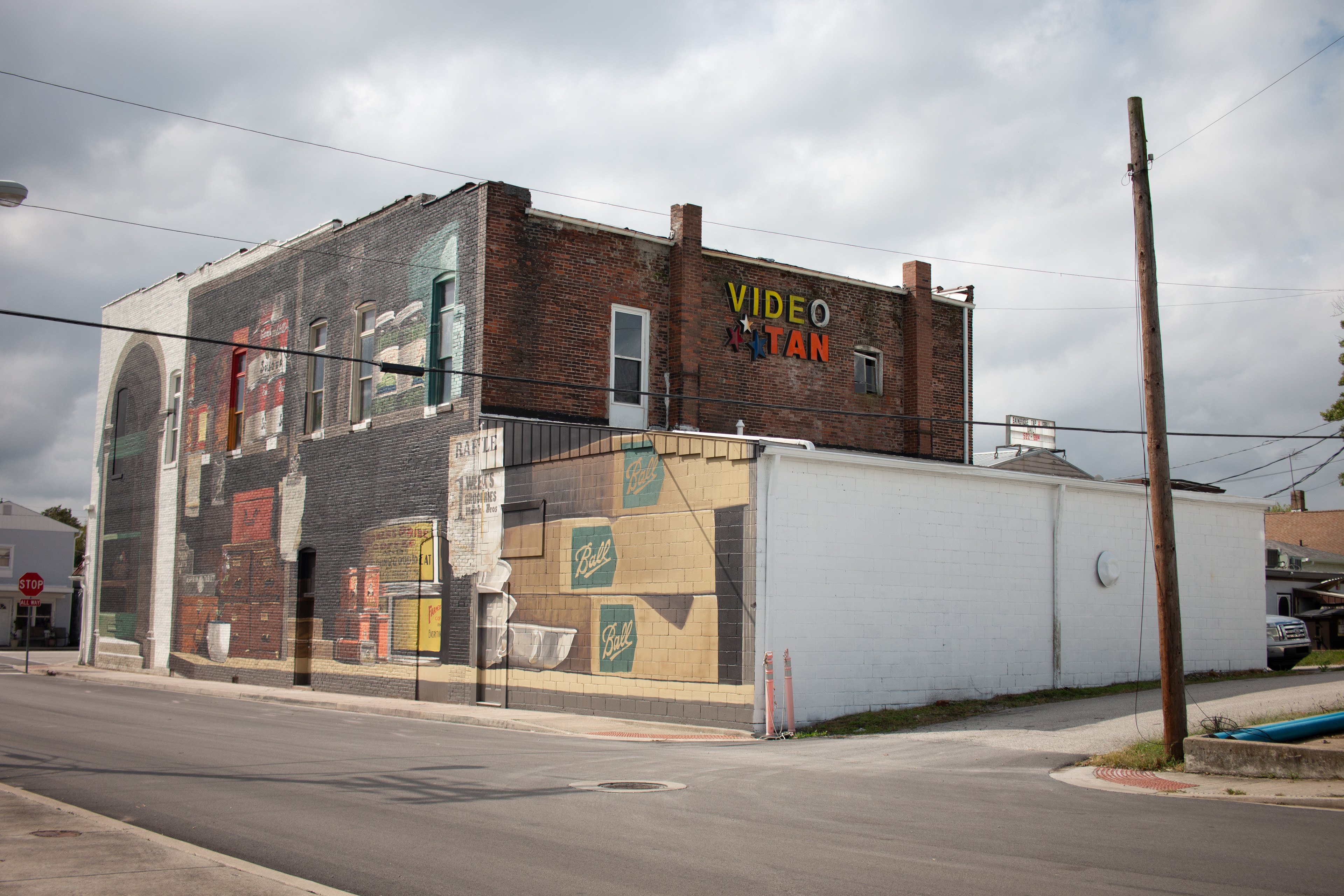 This year, I was notified that I was accepted as one of the artists and that I had this massive historical wall in the town of Bainbridge. As with many other small and sleepy midwestern towns, and especially those located in central Indiana, it's a place that I've driven past more times than I care to count, but have never paid attention to, a story which I feel is all too common and generally indicative of how the landscape and industries shift over time. In my normal spirit of enthusiasm to learn more about these unfamiliar-yet-familiar locations, I dove into the archives of the town's history. I read decades of old newspapers and articles, family lineage records, and worked with another Anthony (though he preferred Tony), who works as the county archivist to find out as much as possible about the town, and more specifically, the building itself and its story.